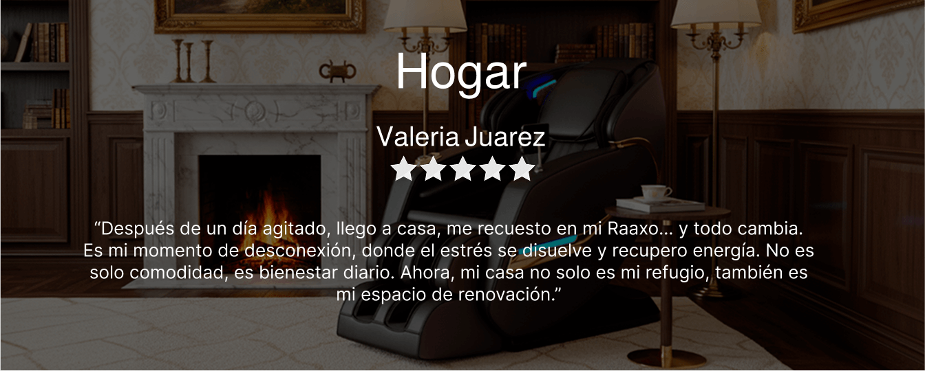 “Después de un día agitado, llego a casa, me recuesto en mi Raaxo… y todo cambia. Es mi momento de desconexión, donde el estrés se disuelve y recupero energía. No es solo comodidad, es bienestar diario. Ahora, mi casa no solo es mi refugio, también es mi espacio de renovación.”